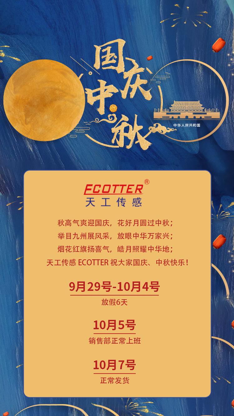 【迎中秋 慶國(guó)慶】天工傳感ECOTTER生產(chǎn)總部9月29號(hào)-10月6號(hào)放假,10月7號(hào)正常發(fā)貨