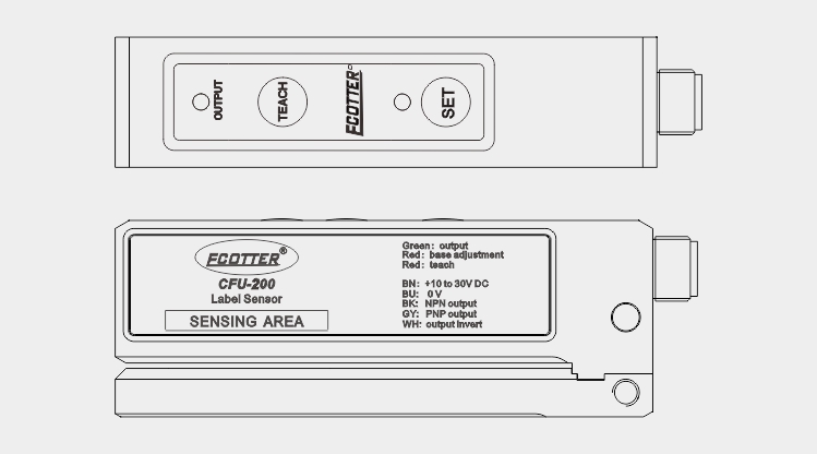 CFU-200標簽傳感器的平衡基準指示燈越亮,它的平衡度越高,工作狀態(tài)越理想。靈敏度指示燈越亮傳感器靈敏度越高,越暗靈敏度越低。