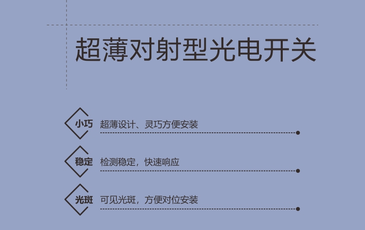 這款光電開關尺寸小巧,機身厚度比較薄為5毫米左右只需些許空間,即可安裝。配備雙色指示燈,可視化了解產品工作狀態(tài)。