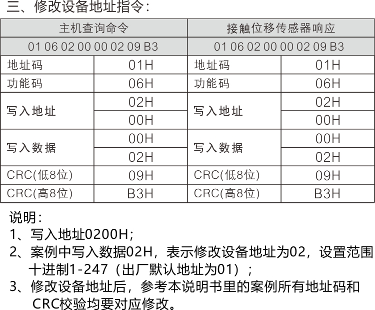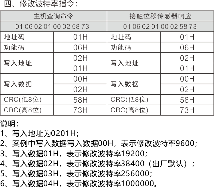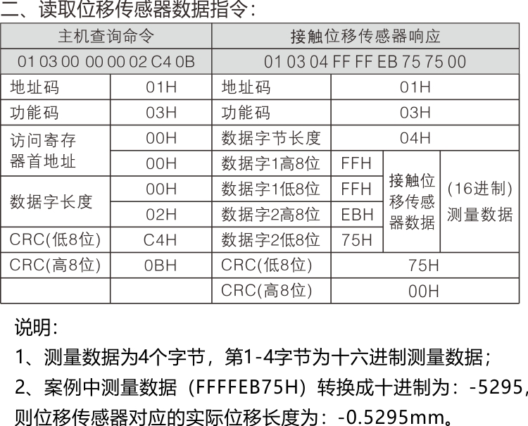 這里我們來(lái)看一下,TSD系列的接觸位移傳感器的通訊指令: