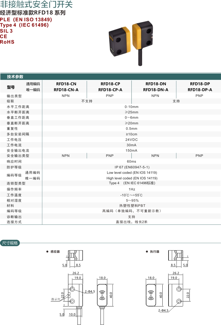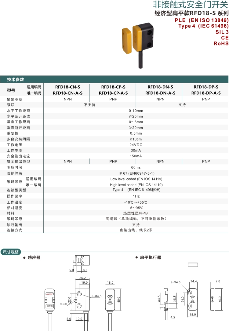 非接觸式安全門開關(guān)采用無線射頻識(shí)別應(yīng)用技術(shù),無論周圍發(fā)生何種變化,都要安全地進(jìn)行開關(guān),非接觸式安全開關(guān)工作穩(wěn)定可靠??梢愿鶕?jù)風(fēng)險(xiǎn)評(píng)估和機(jī)器設(shè)計(jì)的要求使用。