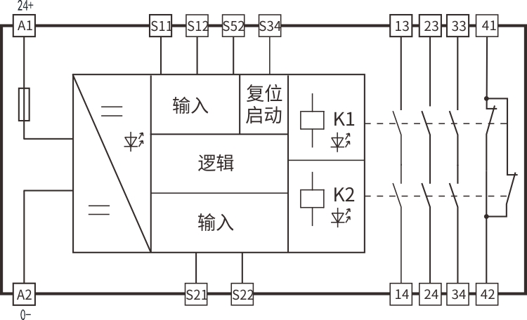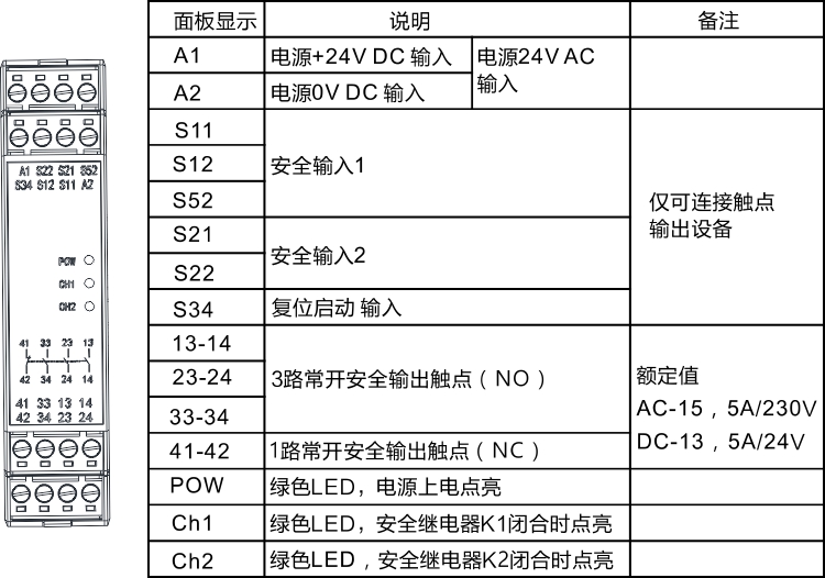SRS-226-2N/P-3NO1NC是一款適用于具有開關(guān)量的安全產(chǎn)品輸入,具有3路常開(NO)安全輸出觸點和1路常閉(NC)輔助輸出觸點的安全繼電器。它可選擇單/雙通道操作,手動/自動復位。