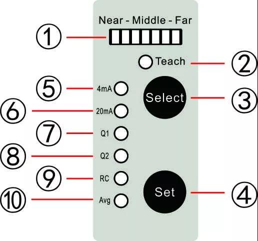 1、按Select鍵5s進入功能設(shè)置模式,此時Teach紅燈亮;