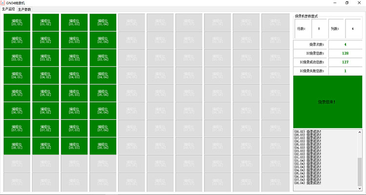 2、燒寫(xiě)速度快,產(chǎn)品在零件貼片后燒寫(xiě)程序,這一點(diǎn)對(duì)特殊封裝的IC極其實(shí)用。程序燒寫(xiě)效率10倍于人工單片燒寫(xiě),也大大降低工作人員的勞動(dòng)強(qiáng)度。燒寫(xiě)情況自動(dòng)記錄,方便查詢(xún)。