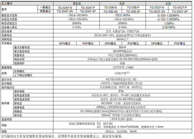 這個系列的壓力表可分為混合壓TG-30AF、正壓表TG-30CF、負(fù)壓表TG-30BF三個類型。