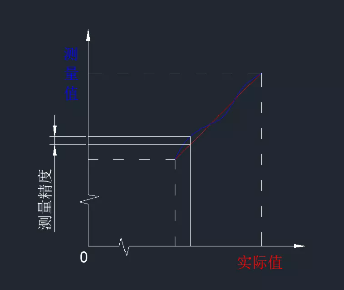 理想狀態(tài)下,物體實(shí)際位移值,與傳感器測量值,呈直線變化關(guān)系;但實(shí)際上傳感器的測量值與物體實(shí)際位移值會(huì)有偏差,該偏差的最大值稱為精度。
