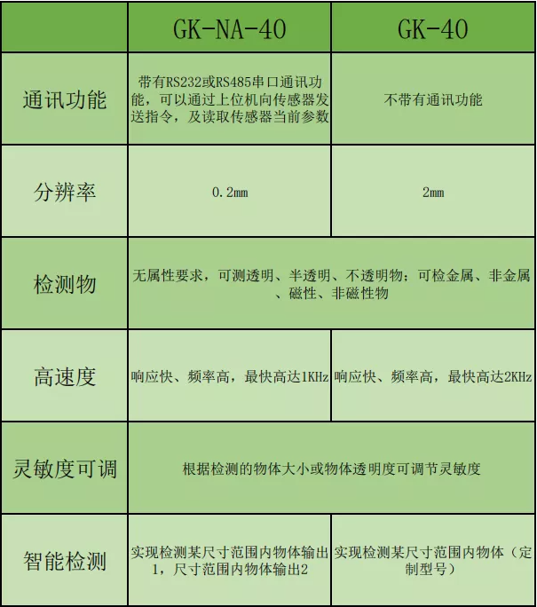 智能框型計(jì)數(shù)傳感器具有很高的靈敏度,分辨率可達(dá)0.2mm。GK-NA框型計(jì)數(shù)傳感器常用于檢測小零件、金屬或非金屬部件的計(jì)數(shù)、沖壓廠種監(jiān)控工件的彈出或移除。