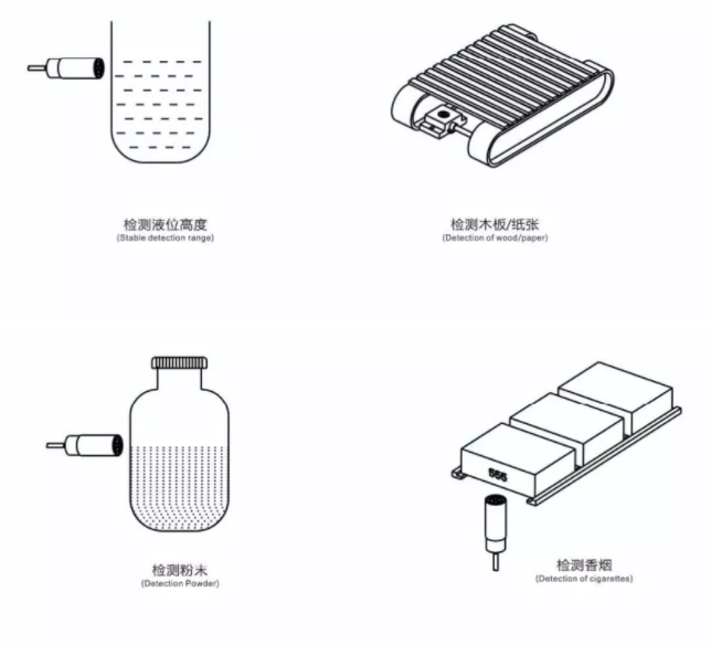 不同物體的導電率、介電常數、體積吸水率等參數不一樣、對應的檢測距離也也不一樣。