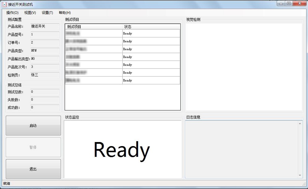 機(jī)臺(tái)上電 —— 電機(jī)復(fù)位 —— 產(chǎn)品裝夾 —— 項(xiàng)目檢測(cè) —— 判斷產(chǎn)品是否合格 —— 更換產(chǎn)品