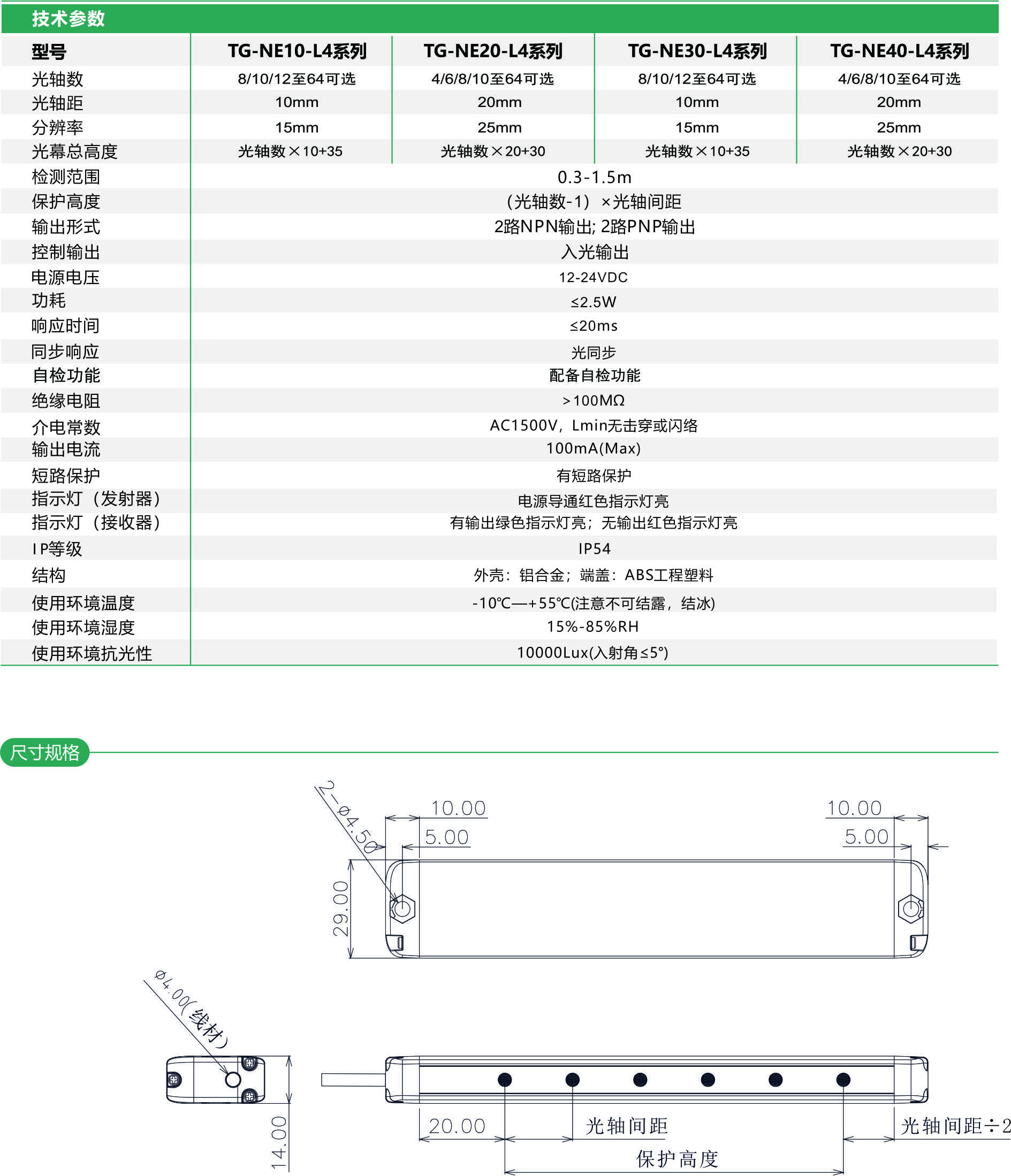 首頁 > 產品中心 >>傳 感 器 >> 安全光幕 >> 四級安全光幕超薄型TG-NE-L4側面對射