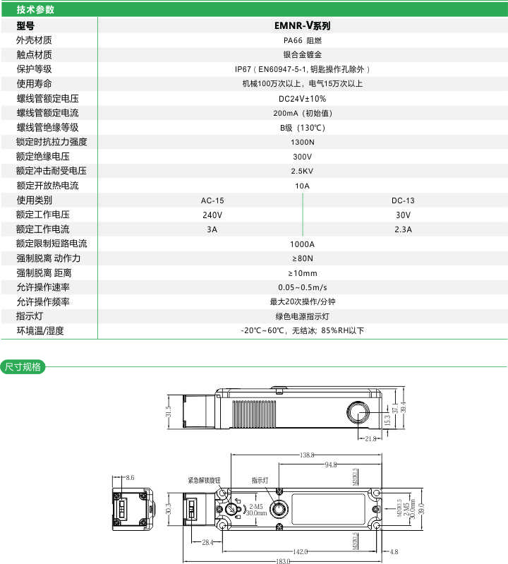 安全門開關(guān) 電磁式 四組觸點(diǎn) EMNR-V 系列