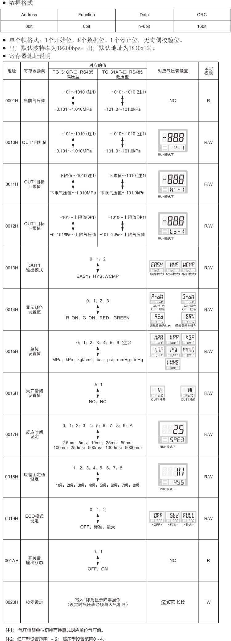 ECOTTER 數(shù)顯氣壓表 485通訊說明