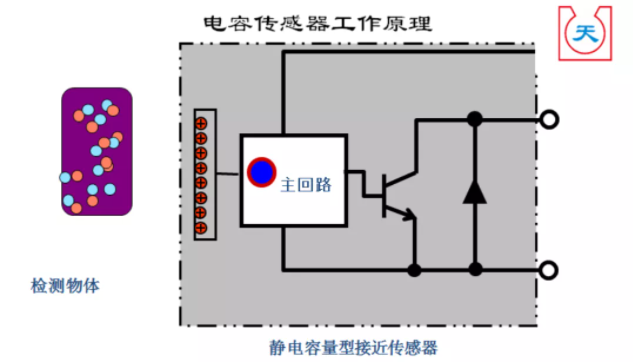 物體接近傳感器時,電容容量發(fā)生改變,從而改變了原電路穩(wěn)態(tài),電路轉(zhuǎn)換觸發(fā)輸出。